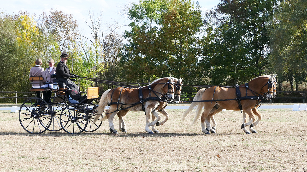 Rolf et Petra Guthmann, installés depuis 2006 au Frohnackerhof où leurélevage de poneys de race Haflinger est établi, sont une nouvelle fois champions de France 2018 en attelage, catégorie « Amateur Élite quatre poneys », en ayant mené leurs poneys Haflinger Alforst, Hans, Max et Nathan à la victoire. Leur régularité dans les trois épreuves du championnat, le dressage (un enchaînement de figures imposées qui permettent d’apprécier la beauté de l’attelage et sa précision) suivi du marathon (un parcours en terrain varié avec des difficultés techniques) et de la maniabilité (un parcours où l’attelage doit passer des portes à l’allure de son choix, sans les toucher) leur ont permis de finir le concours en vainqueur. Le couple avait décroché un premier titre de champion de France de la catégorie en 2011 et de vice-champion de France en 2016.